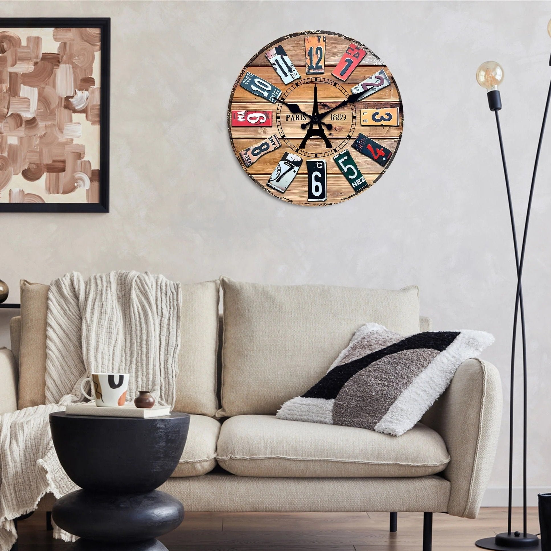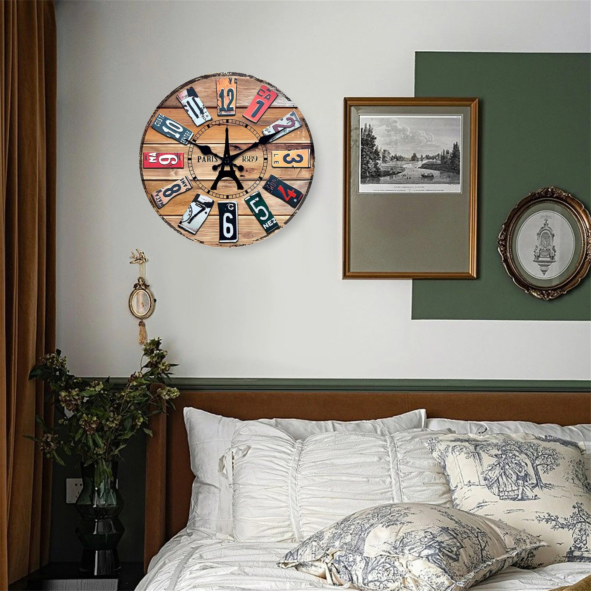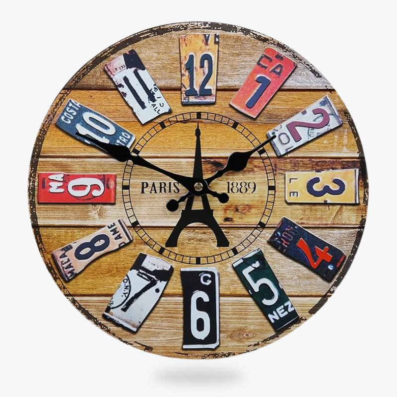 Ben je op zoek naar een opvallend decoratiestuk voor jouw interieur? Dan is deze originele vintage wandklok de perfecte keuze om je keuken (of elke andere kamer) een retro uitstraling te geven. Geïnspireerd op de iconische steden Parijs en Londen, vallen de cijfers op door hun ontwerp dat doet denken aan oude nummerplaten — een uniek detail dat direct charme toevoegt aan je muur.
