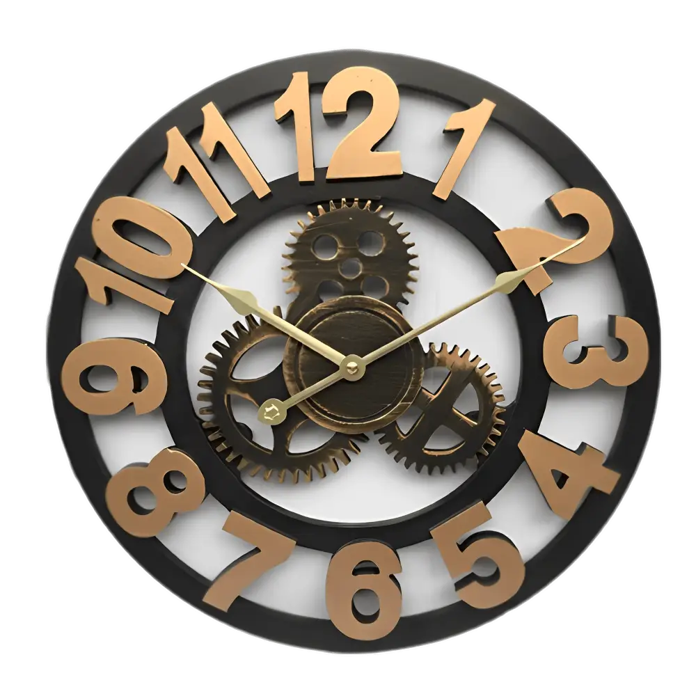 Si vous êtes à la recherche d'une horloge en chiffre romain alliant esthétique et histoire, cette pièce ne manquera pas de vous séduire. Les détails en métal, associés à la chaleur du bois, créent un contraste harmonieux qui donne vie à l’horloge. Les engrenages visibles ajoutent une touche authentique, rappelant les mécanismes industriels du passé, tout en offrant une excellente lisibilité grâce aux chiffres romains en relief.