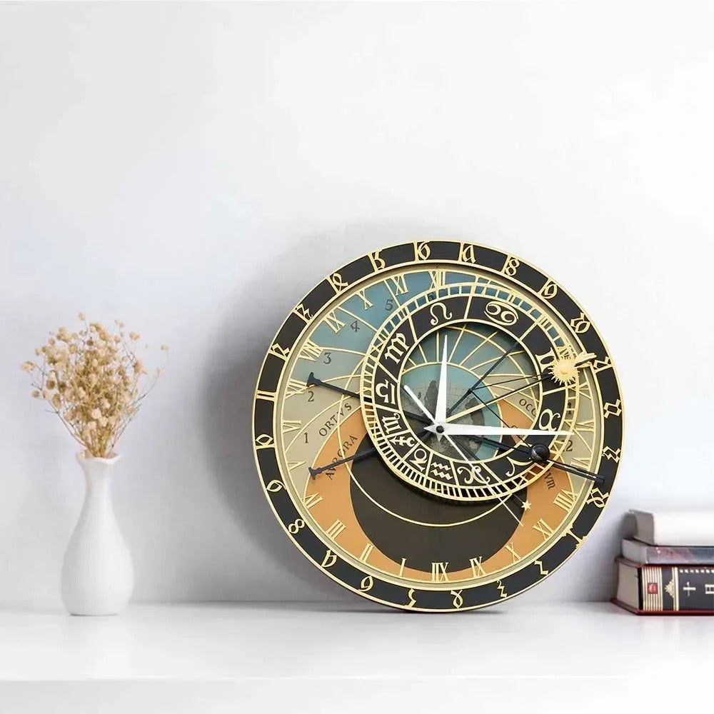 Son cadran complexe, orné de symboles astrologiques et de détails dorés, fait de cette steampunk horloge une pièce maîtresse qui attire le regard. Avec ses finitions haut de gamme et ses nuances chaleureuses, elle s'intègrera aussi bien dans un salon sophistiqué que dans un bureau au style unique. Le cadre en bois permet d'ajouter une profondeur naturelle et une touche intemporelle pour ceux qui recherchent une esthétique plus classique.