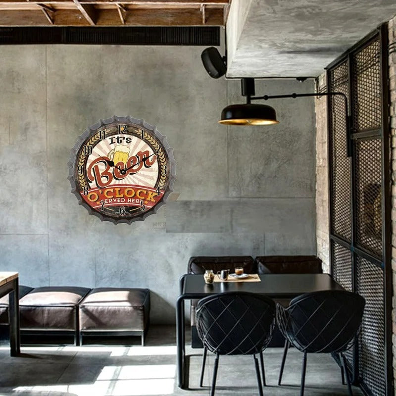 Horloges Murales Rétro en Forme de Capsule de Bouteille de Style Vintage.